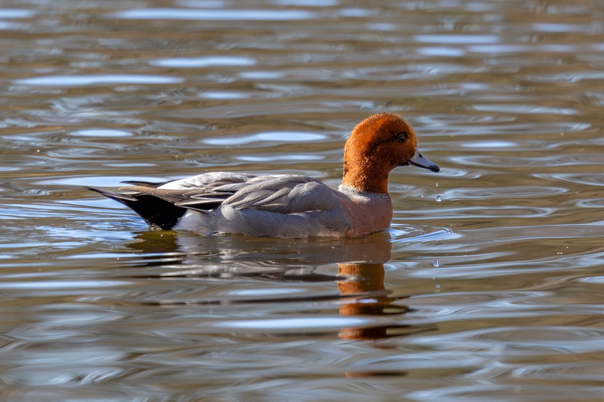 The Eurasian Wigeon is a dabbling duck recognized by the male’s warm chestnut head and creamy forehead. Its body is mostly grey with a soft pink breast and black rear. It often grazes on grass like a goose, especially in winter. This species is common in European wetlands and coastal areas.